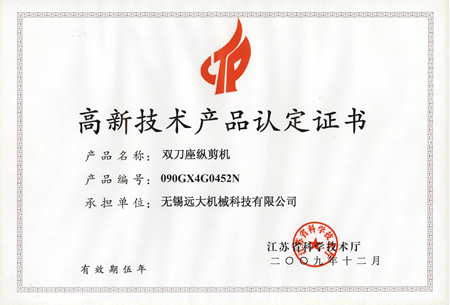 高品證書(高強(qiáng)度45飛剪機(jī))